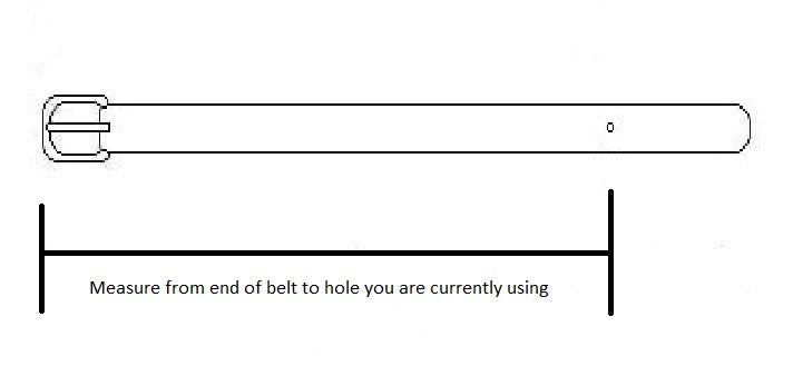 The belt size will be done in inches. It is measured from the middle hole to the end of the belt.