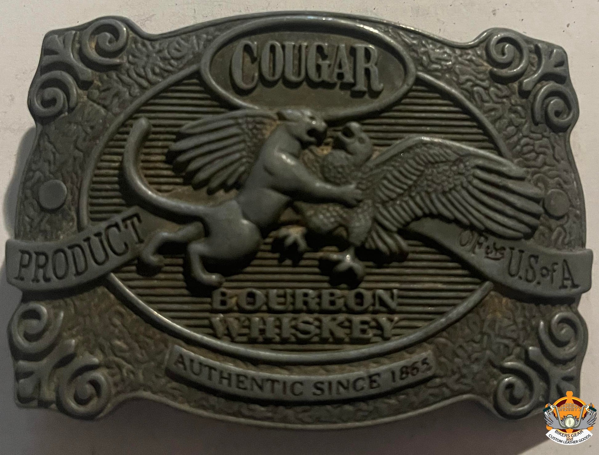 Cougar Whiskey Belt Buckle. Please note, this item is second hand, and there is some wear and tear to the buckle.