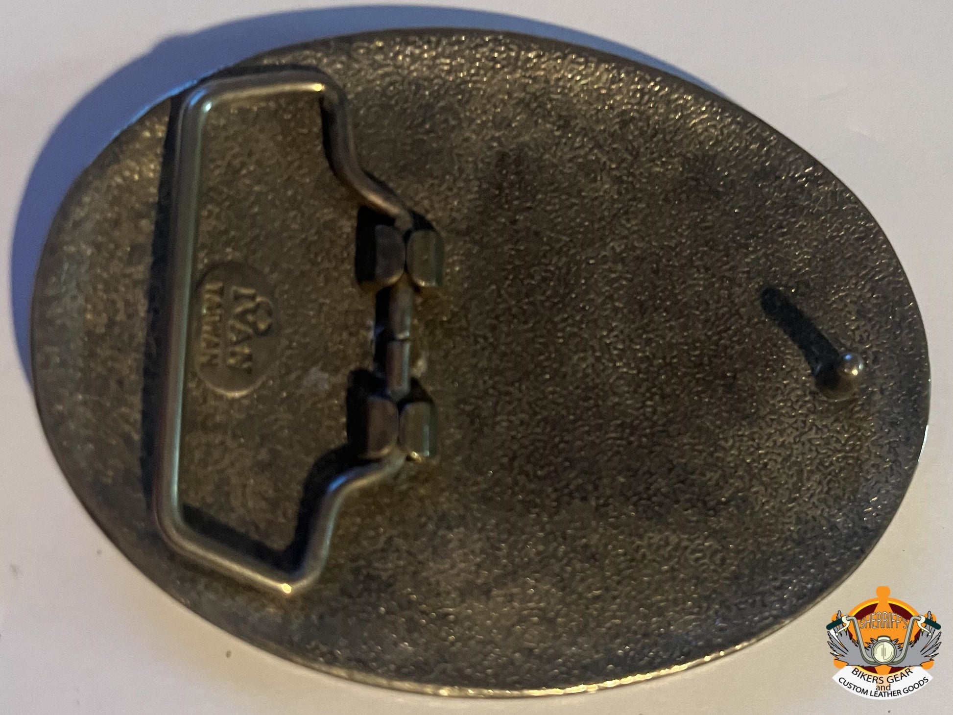 Nickle floral belt buckle. Please note, this item is second hand, and there is some wear and tear to the buckle.