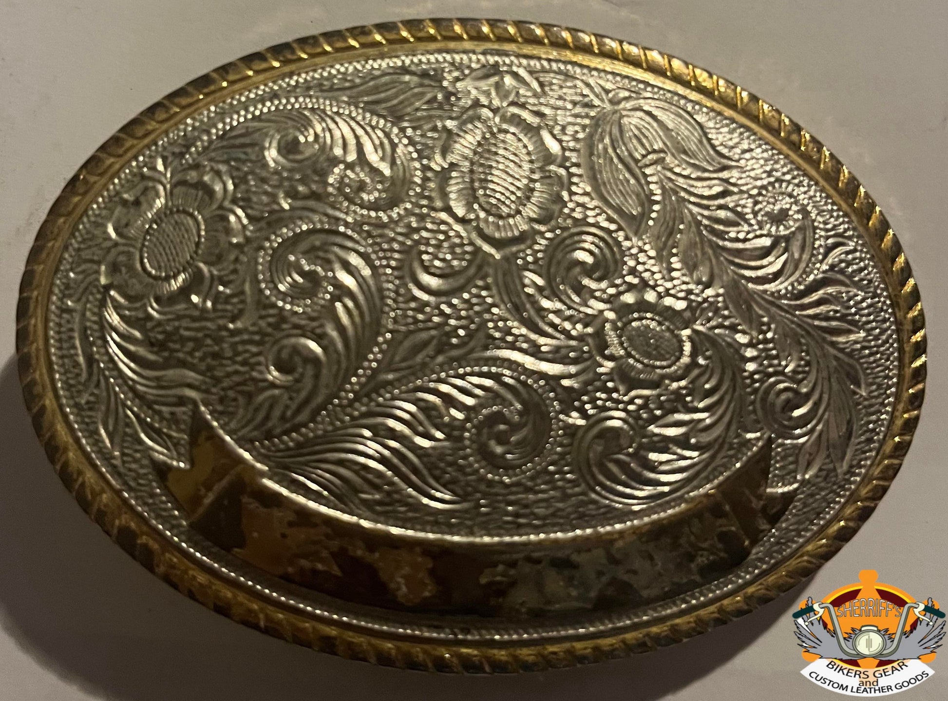 Patterned belt buckle. Please note, this item is second hand, and there is some wear and tear to the buckle.